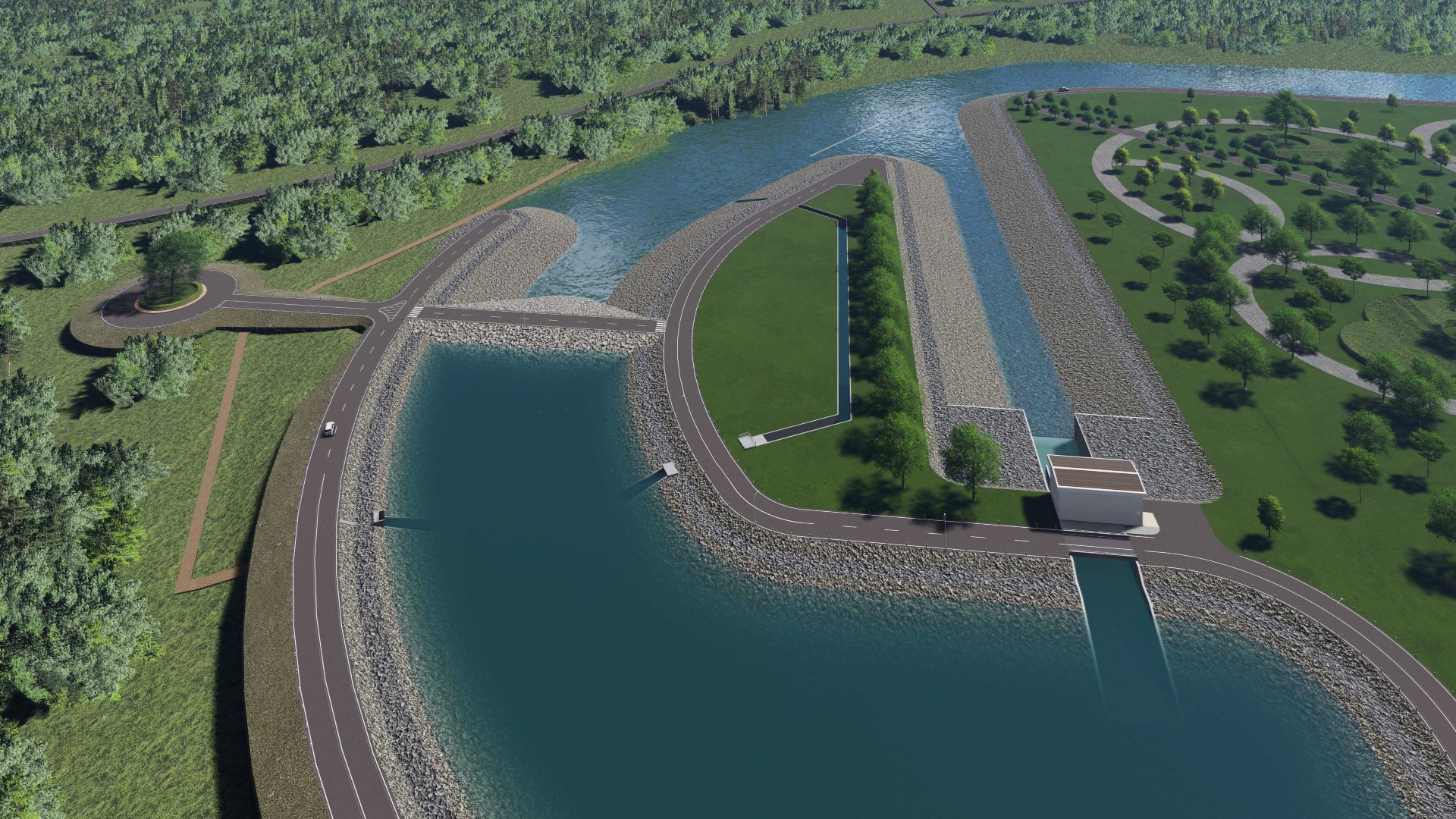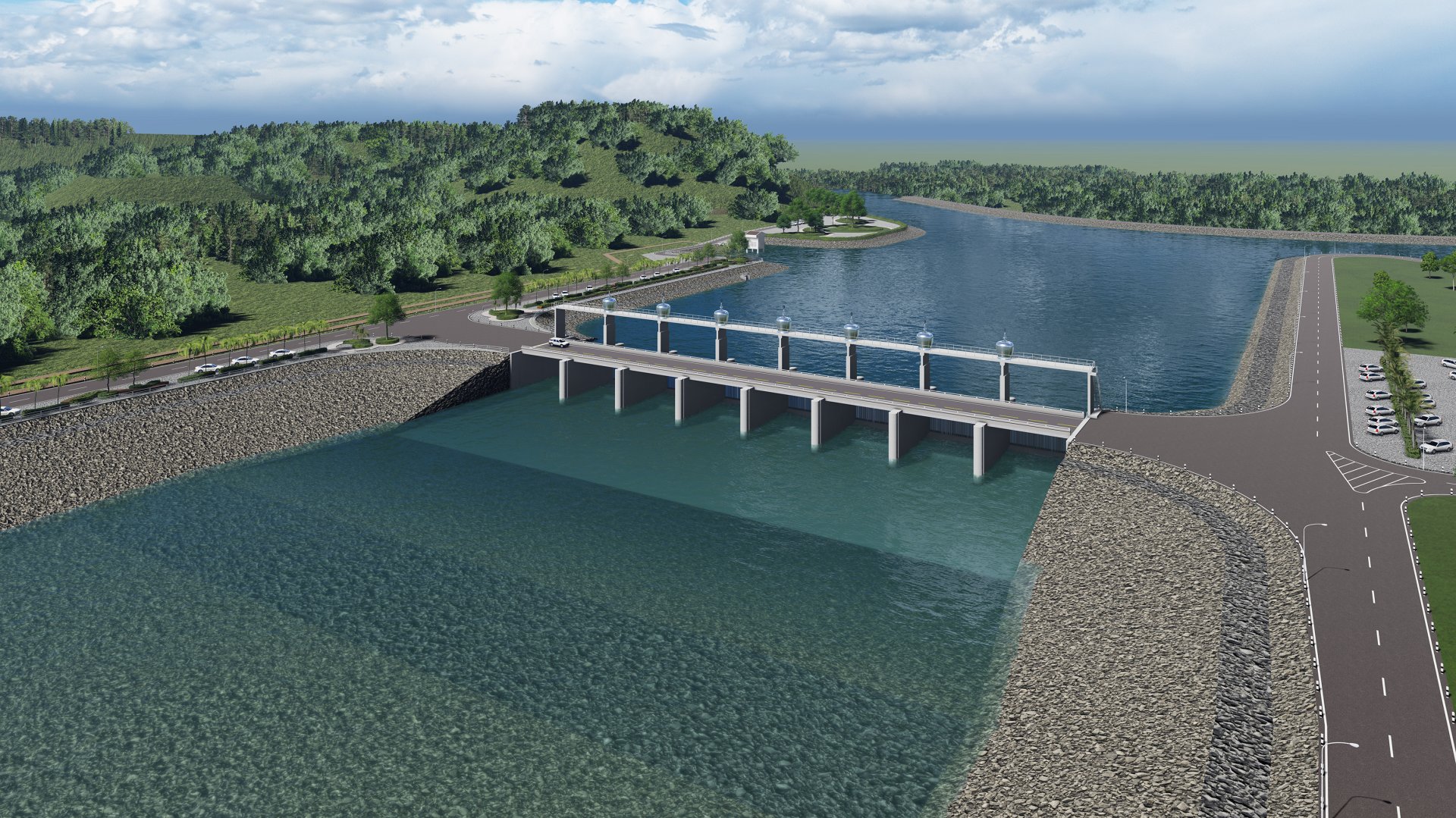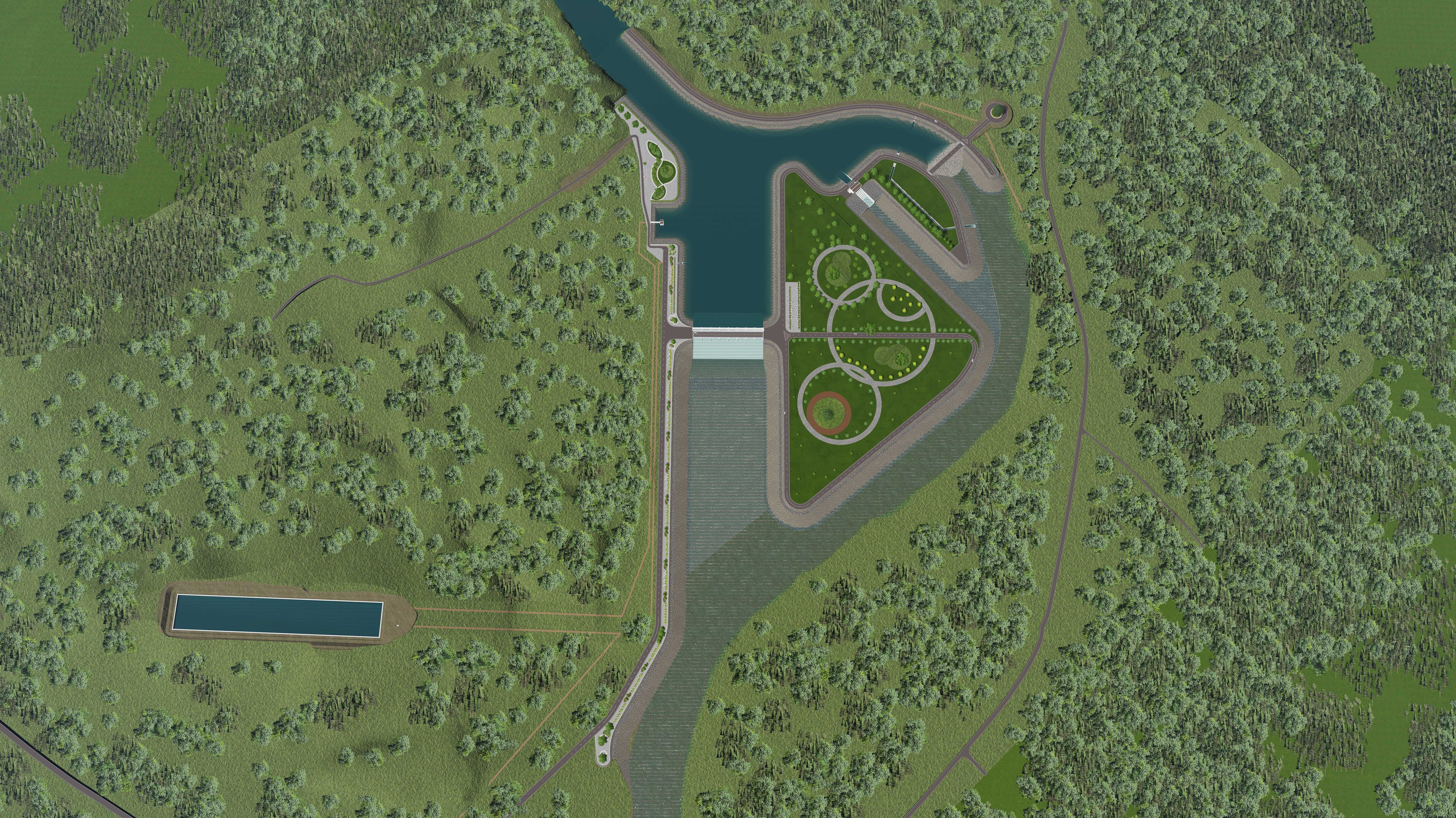 ทางผ่านปลา ตั้งอยู่ฝั่งซ้ายของอาคารหลัก กว้าง 3 เมตร ยาว 280 เมตร