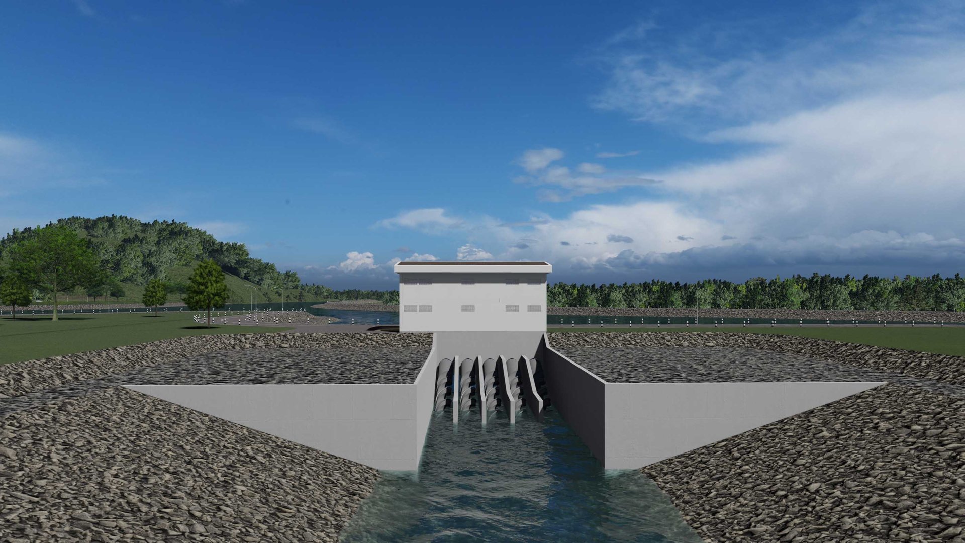 ประตูระบายน้ำ ชนิดบานตรง จำนวน 8 ช่อง