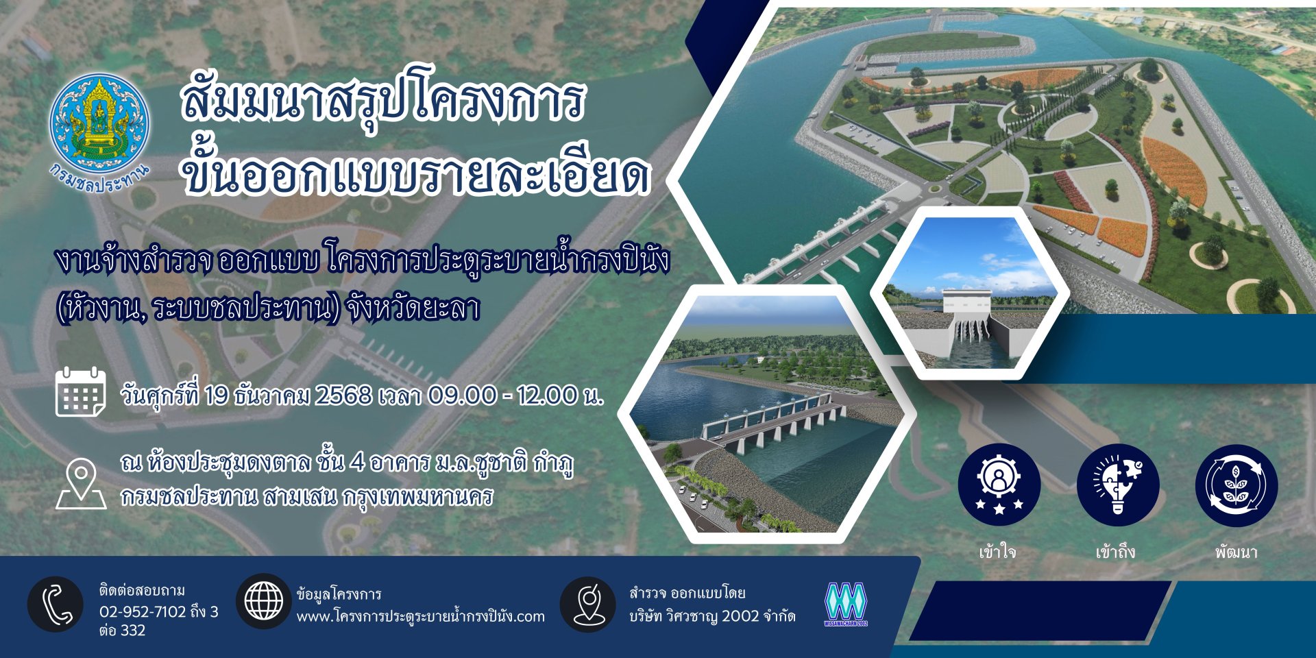 การสัมมนาสรุปโครงการขั้นออกแบบรายละเอียดโครงการ ดำเนินการใน วันศุกร์ที่ 19 ธันวาคม พ.ศ. 2568 เวลา 09.00-12.00 น.