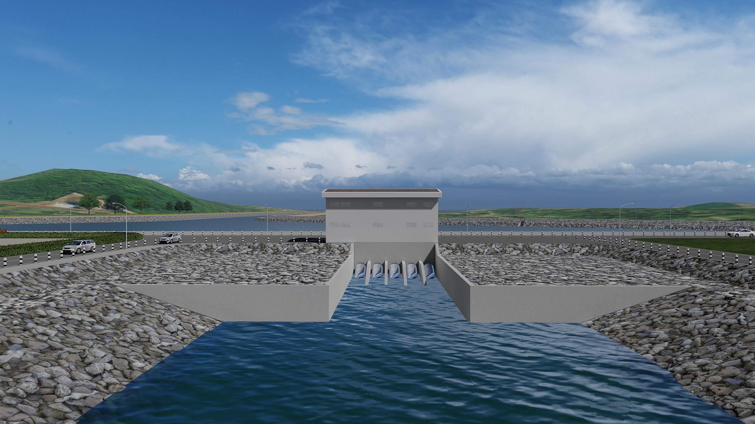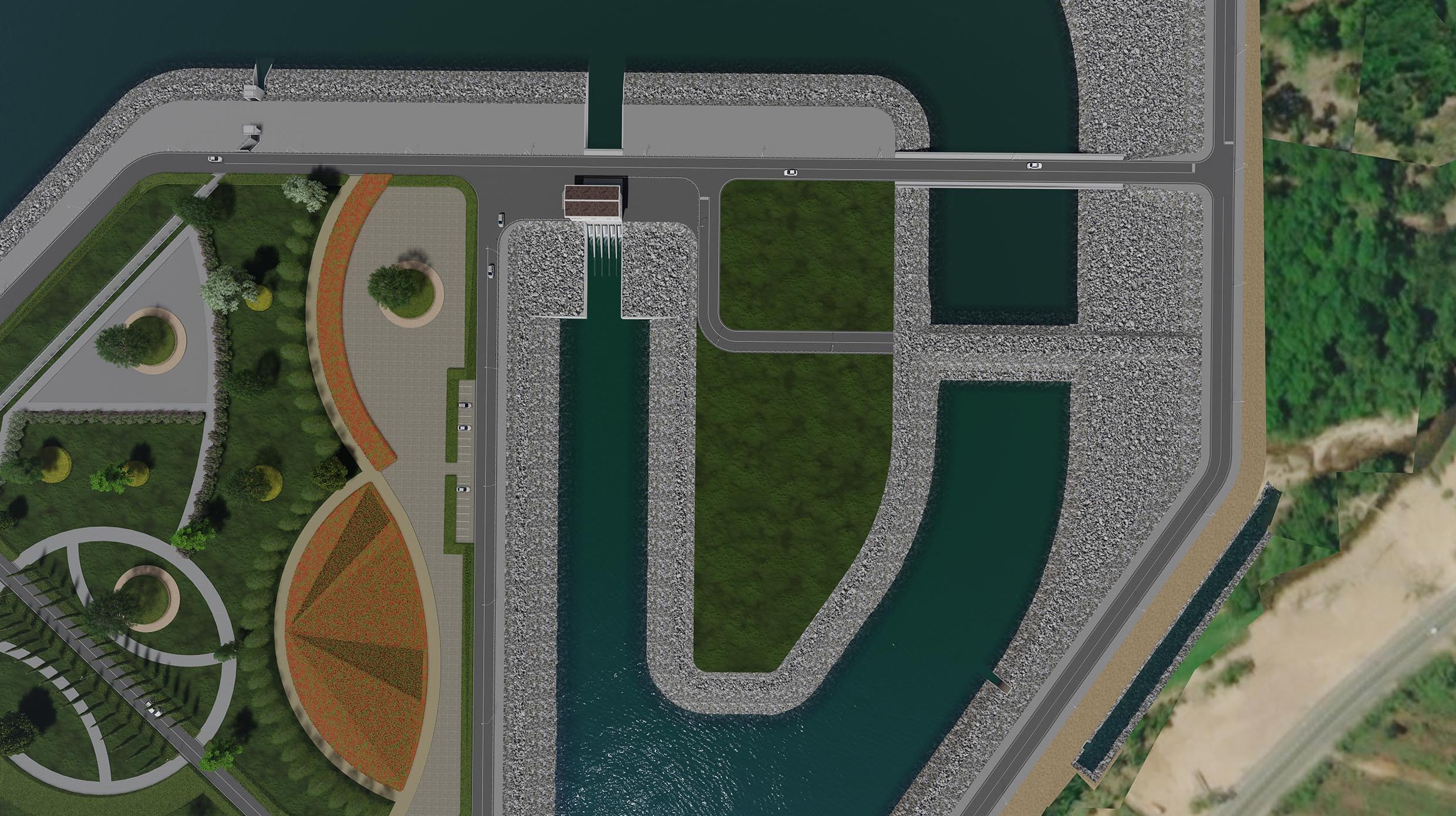 ทางผ่านปลา ตั้งอยู่ฝั่งซ้ายของอาคารหลัก กว้าง 3 เมตร ยาว 280 เมตร