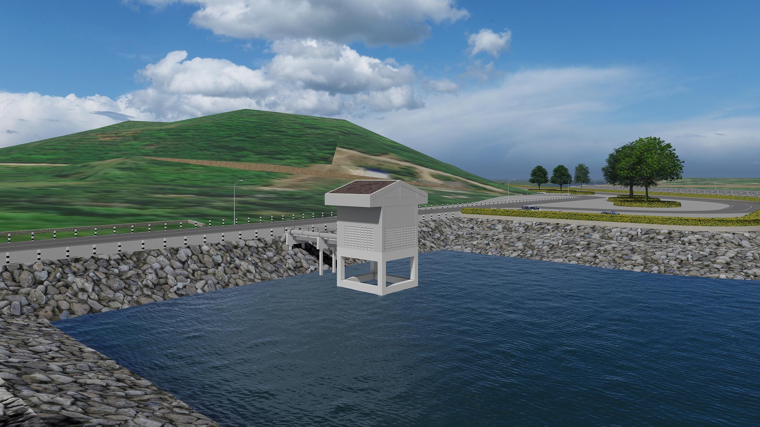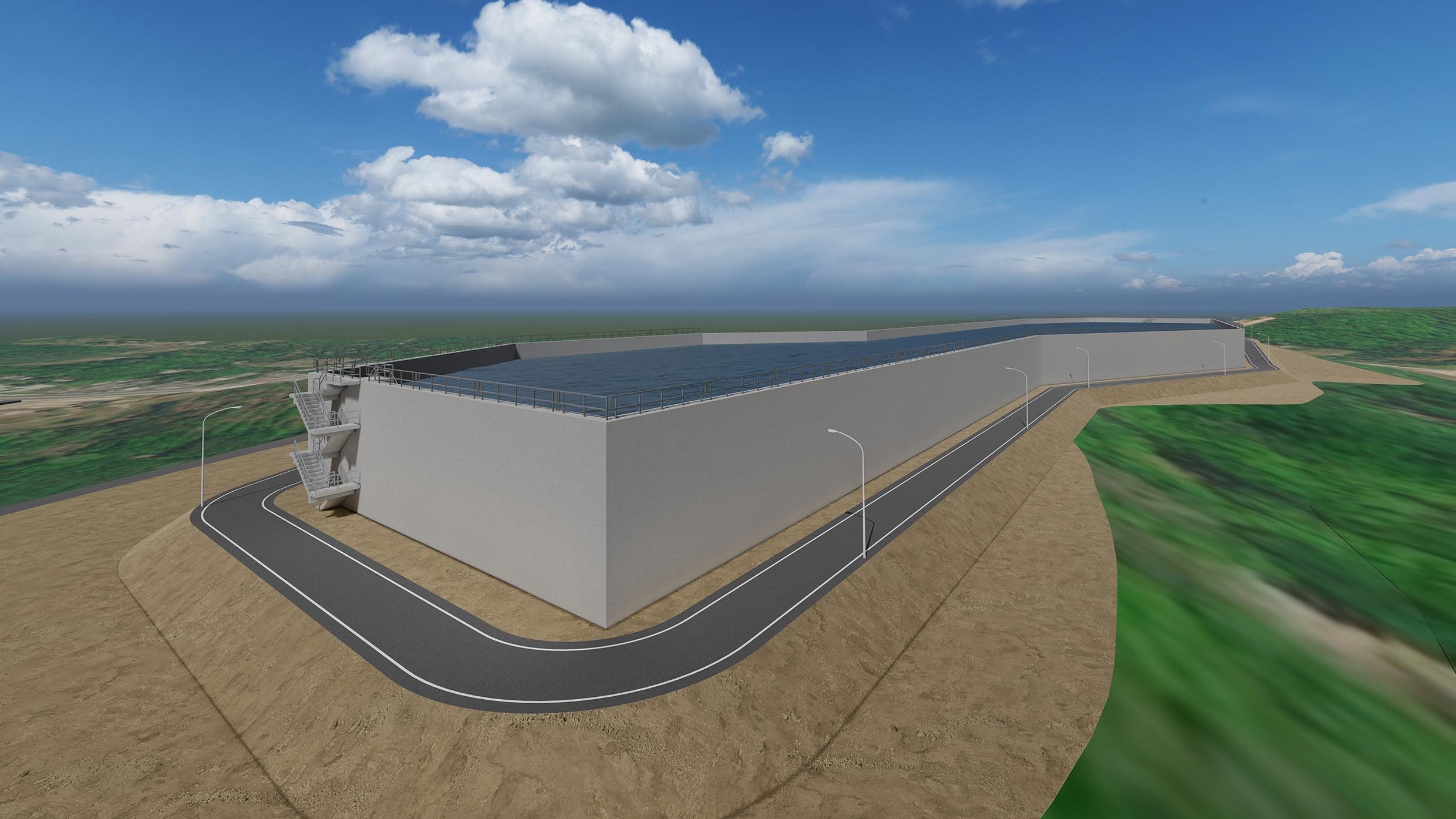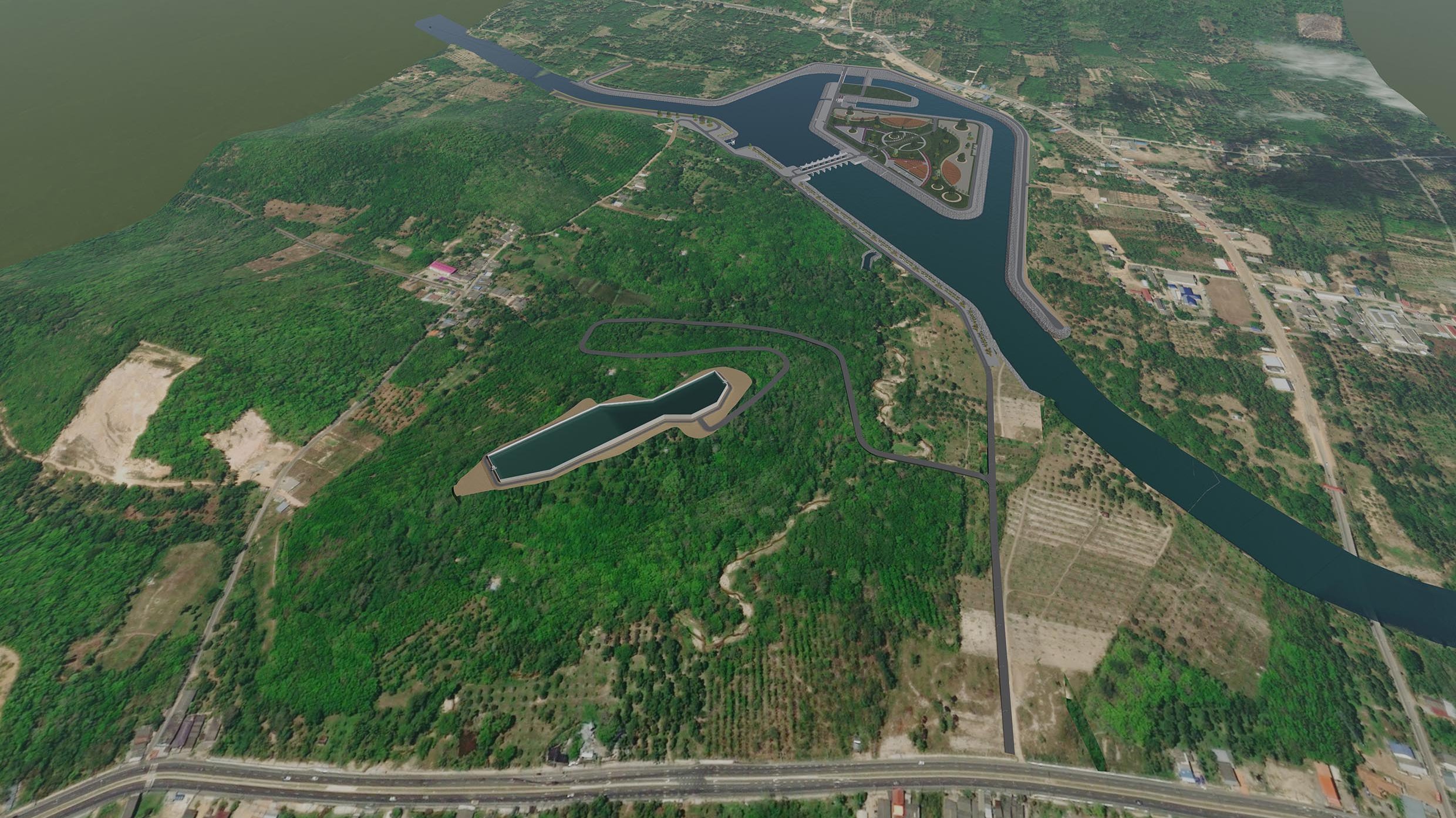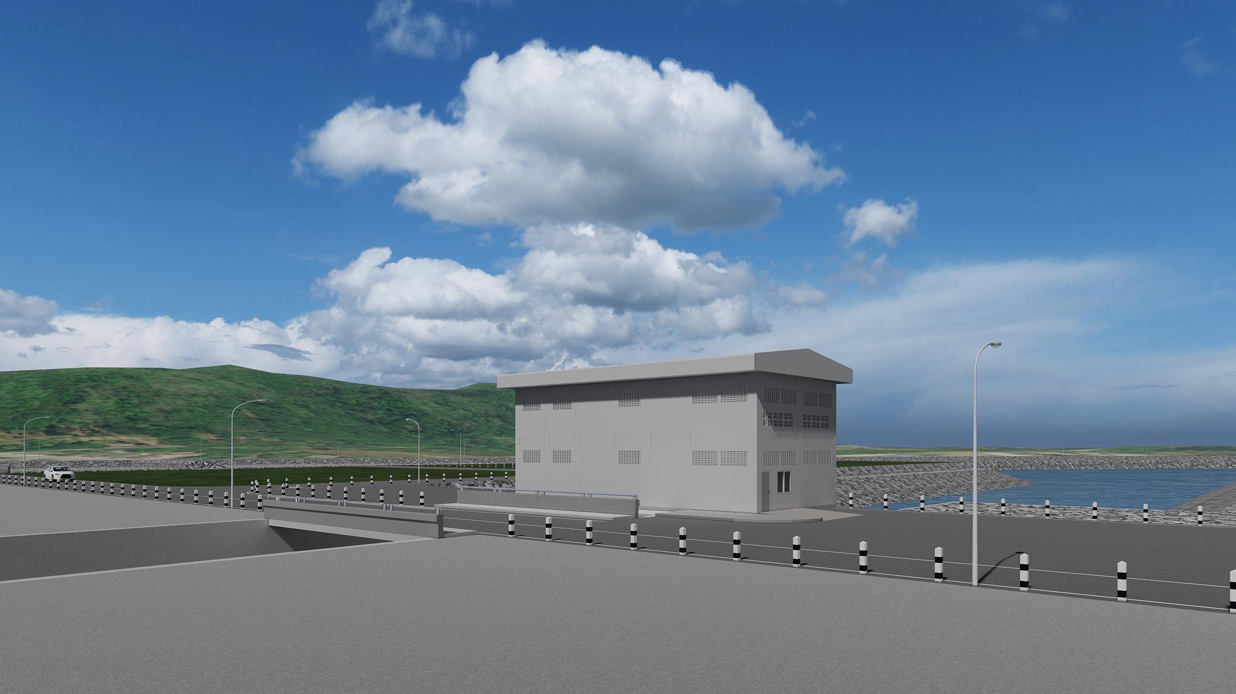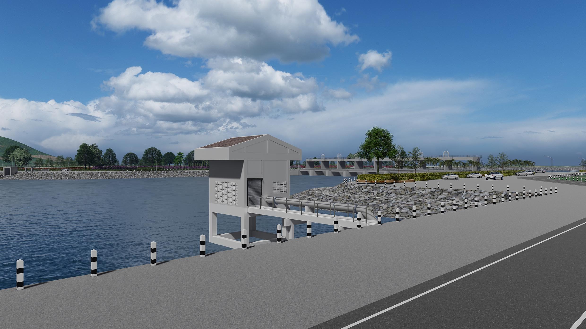 ขนาดบ่อพักน้ำ 150 x 160 x 5 เมตร ความจุ 120,000 ลบ.ม/วินาที
