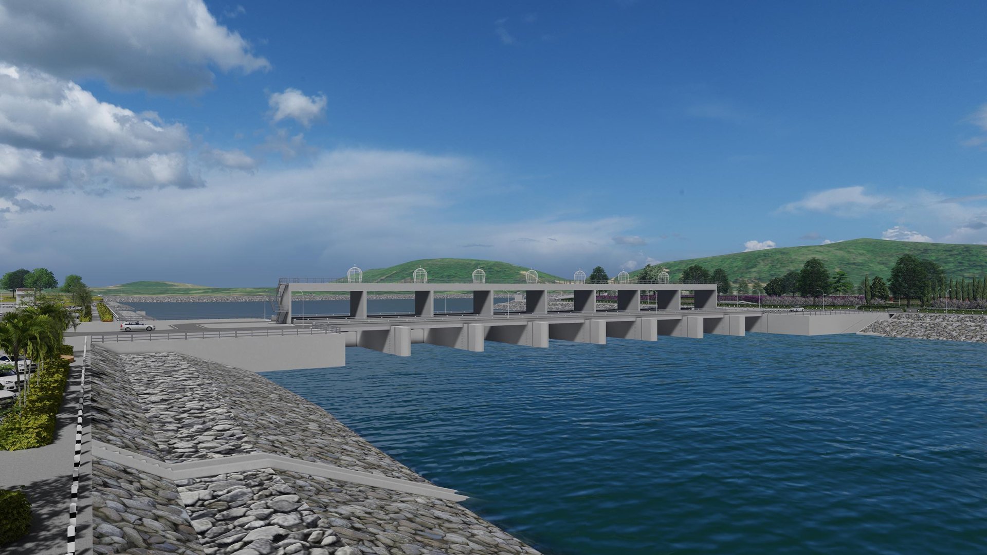 ประตูระบายน้ำ ชนิดบานตรง จำนวน 8 ช่อง